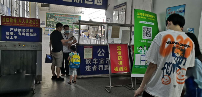 是七月上旬,位于紅旗廣場(chǎng)的湘運(yùn)中心汽車站似乎還沒有恢復(fù)元?dú)猓词怪苣,乘客也是寥寥無(wú)幾,唯有候車室的大屏幕播放著疫情防控的宣傳。
